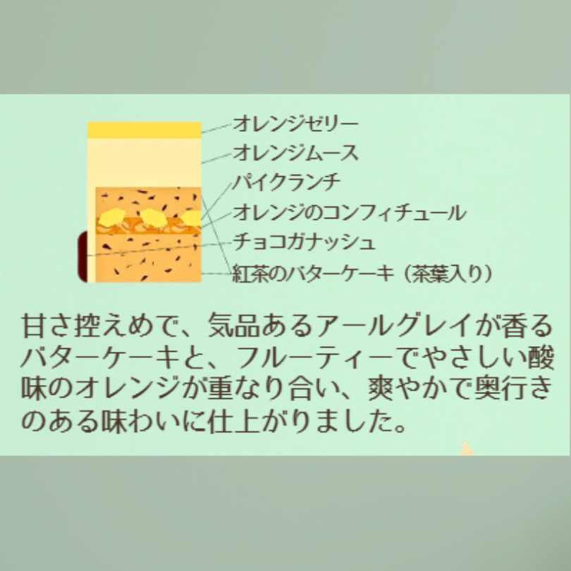 フルーティーでやさしい酸味のオレンジが重なり合い、爽やかで奥行きのある味わいにのケーキです。
